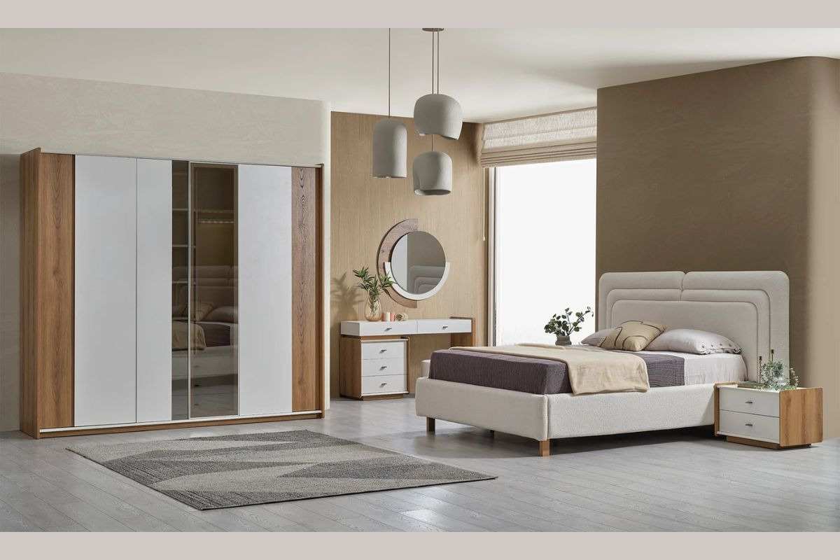 • Takım İçeriği 1 Adet Dolap , 1 Adet Karyola , 1 Adet Şifonyer ve Aynası , 2 Adet Komodin oluşmaktadır.